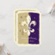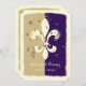 Ces invitations sont accompagnées d'un élégant symbole Fleur de Lis blanc lavé, recouvert de confettis dorés, dans une couleur or, violet et blanc cassé. Parfait pour votre événement mariage de la Nouvelle-Orléans ou autre rassemblement !