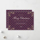 Elégantes cartes de Noël Joyeuses bleues et dorées personnalisées, portant le houx sur un arrière - plan de buffle noir et violet. Personnalisez facilement ces cartes de Noël pourpres sans photo avec vos coordonnées familiales.