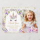 Purple Gold Unicorne Birthday Photo Carte de remerciements