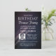 Invitation à dîner d'anniversaire personnalisée avec arrière - plan dégradé violet et bleu. Caractéristiques lignes entièrement modifiables pour personnaliser pour la fête d'anniversaire ou toute occasion, y compris la photo de l'invité d'honneur, les détails de la fête, RSVP, et plus d'infos. Disponible pour impression et téléchargement instantané.