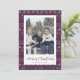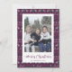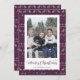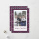 Cartes nostalgiques de Noël en chandail violet, vert et blanc avec le Père Noël, rennes, flocons de neige et arbres. Personnalisez facilement ces laides cartes de Noël avec votre photo et votre nom de famille.