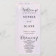 Présentez notre programme de mariage moderne et élégant! Ce programme présente un design unique et contemporain qui impressionne vos invités. Les deux côtés du programme présentent un bel arrière - plan d'une douce couleur violet gris avec des étoiles blanches et des lumières scintillantes qui créent une atmosphère magique et rêveuse. Si vous cherchez quelque chose de simple, minimaliste, moderne, boho ou coloré, ce programme de mariage est parfait pour vous. Le devant du programme affiche les noms du couple, la date du mariage, la ville et l'état, ainsi que l'ordre de la cérémonie. Le texte est imprimé dans une simple police de caractères noire facile à lire, et les mots "Welcome", "Ceremony" et "Wedding Party" sont dans une jolie police de caractères noire moderne qui ajoute une touche d'élégance au programme. Au verso du programme figure une liste de la fête de mariage, afin que vos invités soient au courant de tous les participants à la cérémonie. Les noms du couple sont imprimés dans une police simple en noir gras avec espacement des lettres, créant un effet frappant qui les distingue du reste du texte. Dans l'ensemble, ce programme de mariage moderne et amusant est parfait pour les couples qui veulent créer une expérience unique et mémorable pour leurs invités. Sa belle conception, combinée à ses caractéristiques pratiques et informatives, en font un excellent choix pour tout mariage. N'hésitez pas à commander la vôtre aujourd'hui !