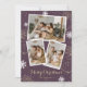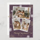 Collage photo violet personnalisé Joyeuses cartes de Noël avec des flocons de neige et des cadeaux. Personnalisez facilement cette carte de vacances photo avec votre image et votre texte.