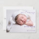 Celebrate the arrival of your little one with this purple minimalist photo baby announcement card. The design features refined handwritten typography, a baby photo and a clean layout, which captures the beauty of simplicity. The flowing script headline “welcoming” adds a gentle, heartfelt touch that's perfect for announcing your newborn’s name, birth date, weight, and time. This card complements any aesthetic from modern chic to classic understated elegance.