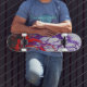This deck looks like it was forged in a storm of color—veins of deep violet and crimson pulse through marbled whites and blacks in a raw, electric display. It's a moody masterpiece for skaters who walk the line between chaos and control. Haunting, fiery, and unforgettable—this board turns every trick into a visual eruption.