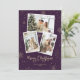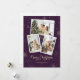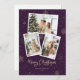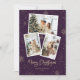 Photo couleur violet et or Joyeuse carte de Noël avec un collage photo, une police de caractères élégante et un arrière - plan violet orné de chutes de neige et de flocons de neige. Personnalisez facilement cette carte de vacances moderne avec vos photos et texte.