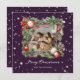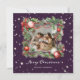 Elégante carte de Noël violet avec une photo à l'intérieur d'une couronne de Noël aquarelle de branches d'épinette, décoration de saint et de Noël. Personnalisez facilement cette carte de Noël avec votre photo et votre texte.