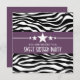 Stars Zebra Print Sweet sixteen Invitation tendance et moderne avec un arrière - plan d'impression zèbre noir et blanc chic et une bordure violette audacieuse ornée d'un motif étoilé amusant. Cette invitation girly est un choix branché et élégant pour une fête douce amusante 16. Facile à customiser, il suffit d'ajouter des détails dans les champs de texte fournis. Cliquez sur "Customiser" pour trouver d'autres options de personnalisation.