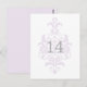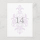 Moderne avec élégance chic décrit cette subtile Mariage damassé Table Numéro Postcard avec un léger lavande damas arrière - plan florissant. Cette carte de table classique est parfaite pour un mariage traditionnel et peut être facilement customisé avec un ou des numéros de table ou les détails de votre mariage. Pour plus d'options de personnalisation, cliquez sur le bouton Customiser.