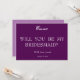 Cette belle carte d'invitation à la femme de chambre de 5 po x 7 po de parties scintillant violette verte. C'est mieux pour la mariée, qui aime les couleurs de l'or et les pois. C'est une façon vraiment amusante de demander à votre amoureuse ou à votre petite amie de faire partie de votre mariage.