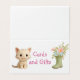Baby shower kitten shows guests the table for cards and gifts.
