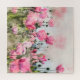 Ce dessin est composé d'une aquarelle représentant des fleurs roses de pavot dans un champ.