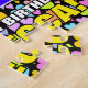Cette conception de puzzle vibrant et coloré à l'occasion d'un anniversaire comprend un grand chiffre « 11 » avec un dégradé de spectre d'arc-en-ciel multicolore, ainsi que le message « JOYEUX 11e ANNIVERSAIRE », et un nom de destinataire personnalisable. Le fond présente un motif joyeux de cœurs aimants de différentes couleurs et tailles. Un puzzle d'anniversaire personnalisé et vibrant comme celui-ci pourrait être offert pour célébrer le onzième anniversaire de quelqu'un.