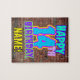 Cette conception amusante de puzzle sur le thème de l'anniversaire comporte le message "HAPPY 14TH BIRTHDAY", ayant un look dynamique, coloré, graffiti et art urbain inspiré, en plus d'un nom de destinataire personnalisé. L'arrière - plan est décoré d'un motif d'inspiration murale en brique. Un casse-tête amusant et customisé comme celui-ci pourrait être utilisé pour reconnaître le quatorzième anniversaire de quelqu’un. [~Z0000532]