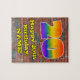 Ce dessin animé et amusant urbain street art et graffiti sur le thème de l'anniversaire jigsaw puzzle design dispose d'un grand nombre "20" avec un dégradé coloré arc-en-ciel inspiré motif. Il comporte également le message "Joyeux 20e anniversaire", et un nom personnalisé. L'arrière - plan dispose d'un motif mural en brique. Un puzzle d'anniversaire coloré et customisé comme celui-ci pourrait être une façon amusante d'envoyer des voeux d'anniversaire à quelqu'un qui célèbre son vingtième anniversaire. [~Z0000545]