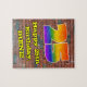 Ce dessin urbain animé et passionnant de rue et de graffitis inspirés par le puzzle d'anniversaire comprend un grand nombre de "25" avec un dégradé coloré du spectre arc-en-ciel inspiré motif, avec le message "Happy 25th Birthday," et un nom personnalisable. L'arrière - plan dispose d'un motif mural en brique. Un puzzle d’anniversaire coloré et modifiable comme celui-ci pourrait être utilisé pour reconnaître le vingt-cinquième anniversaire de quelqu’un. [~Z0000545]