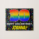 Cette conception joyeuse et amusante de puzzle d'anniversaire dispose d'un grand nombre "30" avec un motif multicolore de spectre arc-en-ciel inspiré de dégradé. Il contient également le message "HAPPY 30th BIRTHDAY", ainsi qu'un nom de destinataire personnalisé. L'arrière - plan a un motif coloré et dynamique, aux formes étoiles de différentes tailles. Un puzzle d’anniversaire personnalisable et attrayant comme celui-ci pourrait être donné pour célébrer le trentième anniversaire de quelqu’un. [~Z0000607]
