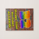 Ce graffiti urbain et le street art inspiré par la conception de puzzle d'anniversaire ont un grand nombre de "32" avec un dégradé coloré du spectre arc-en-ciel inspiré motif, avec le message "Happy 32nd Birthday," et un nom personnalisé. L'arrière - plan a un motif mural en brique. Un puzzle d’anniversaire dynamique et modifiable comme celui-ci pourrait être utilisé pour reconnaître le trente-deuxième anniversaire de quelqu’un. [~Z0000545]
