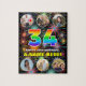 Ce design de puzzle passionnant et joyeux sur le thème de l'anniversaire comporte le numéro "34" avec un motif coloré à spectre arc-en-ciel inspiré du gradient, avec le message "HAPPY 34th BIRTHDAY," et un nom personnalisable, sur un motif inspiré par éclatant feu d'artifice multicolores festifs. Les images qui se trouvent en haut et en bas peuvent être personnalisées, par exemple avec des photos du destinataire, de sa famille et de ses amis. Un puzzle d’anniversaire joyeux et personnalisable comme celui-ci pourrait être utilisé pour reconnaître le trente-quatrième anniversaire de quelqu’un. (Photographie © Storytree Studios, Stanford, CA.) [~Z0000664]