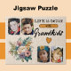 Éclairez votre journée avec notre magnifique puzzle floral ! Doté de quatre beaux emplacements photo pour présenter vos moments préférés de petits-enfants, ce puzzle est la façon parfaite de célébrer la famille. Orné de fleurs vibrantes et du message sincère "La vie est meilleure avec les petits-enfants" dans un texte noir élégant, c’est un défi charmant qui apporte de la joie avec chaque pièce. Idéal pour des réunions de famille ou une soirée intime, ce puzzle est un cadeau merveilleux qui combine le plaisir et l'amour dans un forfait charmant. Partagez le bonheur et créez des souvenirs durables avec vos petits-enfants aujourd'hui! Pêche / Noir / Orange
