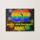Cette conception de puzzle captivante et optimisée sur le thème de l'anniversaire présente un grand nombre de "61" ayant un motif dégradé multicolore inspiré du spectre arc-en-ciel. Il contient également le message "HAPPY 61st BIRTHDAY", ainsi qu'un nom de destinataire personnalisé. L'arrière - plan est doté d'un motif vibrant et multicolore, inspiré de feux d'artifice festifs. Un puzzle d'anniversaire gai et personnalisé comme celui-ci pourrait être une façon amusante d'envoyer des voeux d'anniversaire à quelqu'un qui célèbre son soixante et unième anniversaire. [~Z0000605]