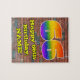Ce dessin urbain amusant et dynamique de rue et graffiti inspiré de jigsaw d'anniversaire puzzle design dispose d'un grand nombre "66" avec un motif coloré de gradient de spectre arc-en-ciel inspiré. Il comporte également le message "Joyeux 66e anniversaire", et un nom modifiable. L'arrière - plan dispose d'un motif mural en brique. Un puzzle d'anniversaire dynamique et personnalisé comme celui-ci pourrait être une façon amusante de transmettre un message d'anniversaire à quelqu'un qui célèbre son soixante-sixième anniversaire. [~Z0000545]