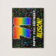 Cette conception de puzzle en forme de casse-tête joyeuse et accrocheuse à l'occasion d'un anniversaire présente un grand nombre « 71 » avec un motif dégradé inspiré du spectre de l'arc-en-ciel multicolore. Il comporte également le message « JOYEUX 71e ANNIVERSAIRE » et un nom de destinataire personnalisable. L'arrière-plan présente un motif amusant de symboles musicaux de différentes couleurs et tailles. Un puzzle d'anniversaire personnalisable et entraînant comme celui-ci pourrait être utilisé pour célébrer le soixante-et-onzième anniversaire de quelqu'un. Ceux-ci pourraient être extraordinaires si cette personne est un compositeur, un musicien, un chanteur, un auteur-compositeur ou un amoureux de la musique.