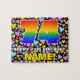 Cette conception audacieuse et amusante de puzzle à thème d'anniversaire comporte un grand nombre de "74" avec un motif multicolore de spectre arc-en-ciel inspiré de gradient, avec le message "HAPPY 74th BIRTHDAY,", et un nom de destinataire personnalisé. L'arrière - plan a un motif joyeux de coeurs avec des tailles et des couleurs variées. Un puzzle d'anniversaire aussi excitant et personnalisé pourrait être une façon amusante de transmettre des voeux d'anniversaire à quelqu'un qui célèbre son soixante-quatorzième anniversaire. [~Z0000611]