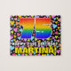 Cette conception de puzzle à thème d'anniversaire coloré et accrocheuse comprend un grand nombre de "75" avec un motif multicolore à spectre arc-en-ciel inspiré de dégradé. Il contient également le message "HAPPY 75th BIRTHDAY", ainsi qu'un nom de destinataire modifiable. L'arrière - plan dispose d'un motif optimiste de coeurs aimés ayant une variété de tailles et de couleurs. Un casse-tête amusant et personnalisé comme celui-ci pourrait être donné pour célébrer le soixante-quinzième anniversaire de quelqu’un. [~Z0000611]