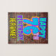 Cette conception amusante de puzzle sur le thème de l'anniversaire comporte le message "HAPPY 76TH BIRTHDAY", ayant une apparence vibrante, colorée, graffiti et art urbain de rue inspiré, en plus d'un nom de destinataire modifiable. L'arrière - plan est décoré d'un motif d'inspiration murale en brique. Un casse-tête amusant et personnalisé comme celui-ci pourrait être utilisé pour souligner le soixante-seizième anniversaire de quelqu’un. [~Z0000532]