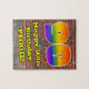 Ce dessin urbain amusant et dynamique de rue et de graffiti sur le thème de jigsaw de conception de puzzle dispose d'un grand nombre "90" avec un motif coloré du spectre arc-en-ciel inspiré. Il comporte également le message "Joyeux 90e anniversaire", et un nom personnalisable. L'arrière - plan dispose d'un motif mural en brique. Un puzzle d'anniversaire dynamique et personnalisable comme celui-ci pourrait être une façon amusante d'envoyer des voeux d'anniversaire à quelqu'un qui célèbre son quatre-vingt-dixième anniversaire. [~Z0000545]