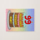 Cette conception de puzzle colorée et optimisée à thème d'anniversaire présente une représentation de dessin animé d'un gâteau d'anniversaire à trois niveaux avec des bougies en forme de chiffre sur le dessus montrant l'âge "99", avec le message "HAPPY 99TH BIRTHDAY," et un nom de destinataire personnalisé. L'arrière - plan dispose d'un motif multicolore pastel en arc-en-ciel inspiré du spectre dégradé. Un puzzle d’anniversaire joyeux et modifiable comme celui-ci pourrait être donné pour célébrer le quatre-vingt-dix-neuvième anniversaire de quelqu’un. [~Z0000621]