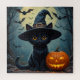 Puzzle Adorable Chat Noir Portant Sorcière Casquette