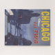 Affiche de voyage d'époque pour les vols de Trans World Airlines à destination de Chicago montrant des ponts enjambant une rivière la nuit, vers 1960.