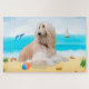 A afghan hound dog sitting on beach is a perfect gift idea for someone who love this dog breed.