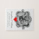 Créez le votre possèdent très, puzzle unique de souvenir utilisant votre propre photo de mariage. Le secteur de cadre tourbillonnant bouclé de modèle photo de griffonnage de style mignon de griffonnage accentue votre photographie, s'il soit en noir et blanc ou polychrome. Le petit coeur rouge au centre ajoute un bruit supplémentaire de couleur, et il y a trois gisements faits sur commande des textes pour vos noms, date de mariage, et emplacement de la cérémonie de mariage.