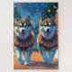 This festive design captures the joyful spirit of the holiday season, featuring an adorable dogs.Nestled in a winter wonderland, complete with a decorated Christmas tree, and beautifully wrapped presents. Snowflakes gently fall, adding a magical touch to the scene, while the vibrant colors of the holiday decorations create a warm and cheerful atmosphere.