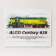 Locomotive diesel vintage Alco C-628 à nez élevé avec couleurs jaune et vert et drapeau américain en arrière - plan. American Locomotive Company Century 628 Locomotive pour Chicago & North Western trains de marchandises. Des oeuvres d'art détaillées mettant l'accent sur ses couleurs vibrantes et son attrait rustique, dans un décor texturé. Capture la nostalgie et le design industriel des trains classiques.