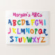 Une façon amusante pour les enfants de pratiquer leurs ABC avec ce amusant puzzle alphabet coloré. Les lettres sont de couleurs vives sur un arrière - plan blanc. Personnalisez avec le nom de votre enfant en rose vif