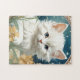 Puzzle avec un chaton dans le style Art Nouveau d'Alphonse Mucha! Un chaton blanc et moelleux aux yeux bleus pose avec des fleurs jaunes. Un joli cadeau pour les amoureux de les chats et les collectionneurs Art Nouveau!