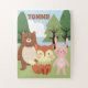 Ajoutez le nom de votre enfant à ce puzzle plein d'amis forestiers. Comprend des représentations mignonnes d'un renard rouge, d'un ours brun et d'un lapin rose dans une forêt à feuillage persistant.