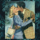 Illustration vintage d'amour et de romance représentant un homme et une femme en rendez-vous galant en train de danser sur la musique à la radio près d'un sapin de Noël.