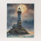 Aquarelle, vieux phare au bord de la mer et de la lune. Image numérique
