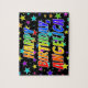 Ce puzzle dynamique et amusant sur le thème de l'anniversaire a le message "HAPPY BANTHDAY, ANGELICA" avec les personnages ayant un spectre arc-en-ciel coloré inspiré motif de dégradé, en plus d'une étoile vivante formes motif arrière - plan. Un puzzle aussi excitant pourrait être utilisé pour envoyer un message d'anniversaire à quelqu'un nommé Angelica. [~Z0000468]