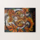 Année chinoise du puzzle de tigre, tigre unique de conception avec le dragon oriental et lis tigrés l'entourant ! Remonté les morceaux de votre zodiaque chinois signez avec ce beau puzzle d'art numérique