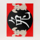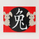 Caractère chinois pour signe zodiaque lapin et illustration lapin en blanc sur rouge et noir.