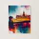 Watercolor Budapest puzzle avec le Parlement hongrois bâtiment et Pont Chaîne sur le Danube de style vintage coloré. Budapest Skyline, Hongrie, Magyar