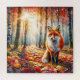 Le puzzle présente une illustration aquarelle d'un renard alerte dans une forêt en automne avec des feuilles d'automne qui l'entourent. Portrait aux couleurs chaudes, oranges, rouges, jaunes et marron, le soleil brille à travers les arbres. Parfait pour la saison d'automne !