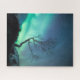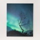 Beautiful green Polar Light (Aurora borealis) behind a tree at the coast of Northern Norway, Scandinavia.