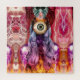Magnifique collage, fantaisiste, surréaliste et trippant d'une étrange entité féminine aux couleurs de l'arc-en-ciel.